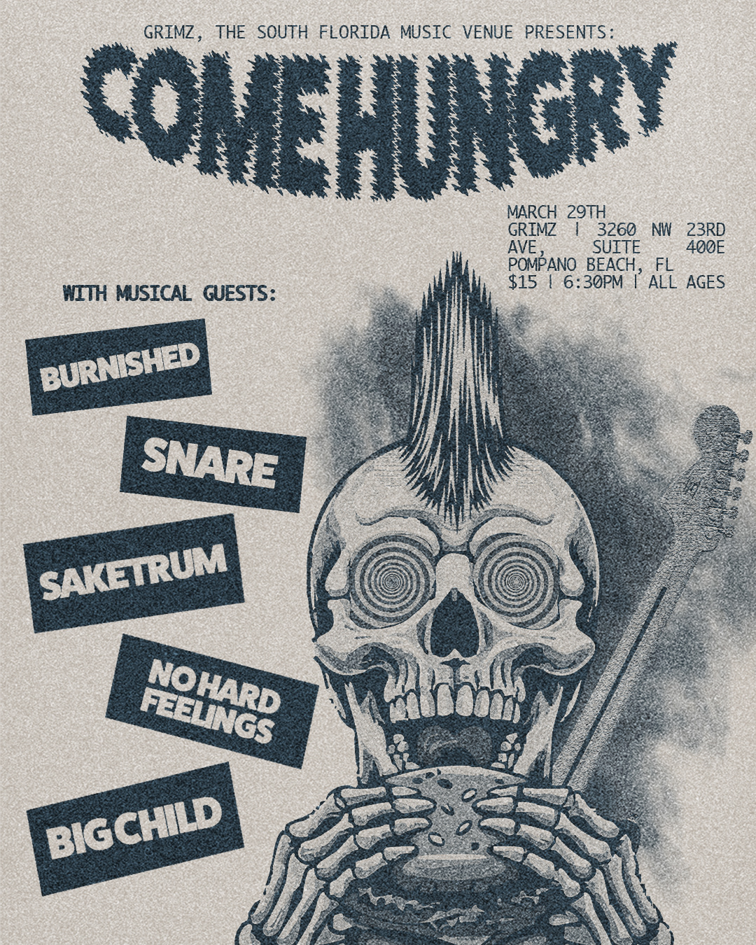 Social Media Graphic for the 'COME HUNGRY' music event at the GRIMZ Venue for